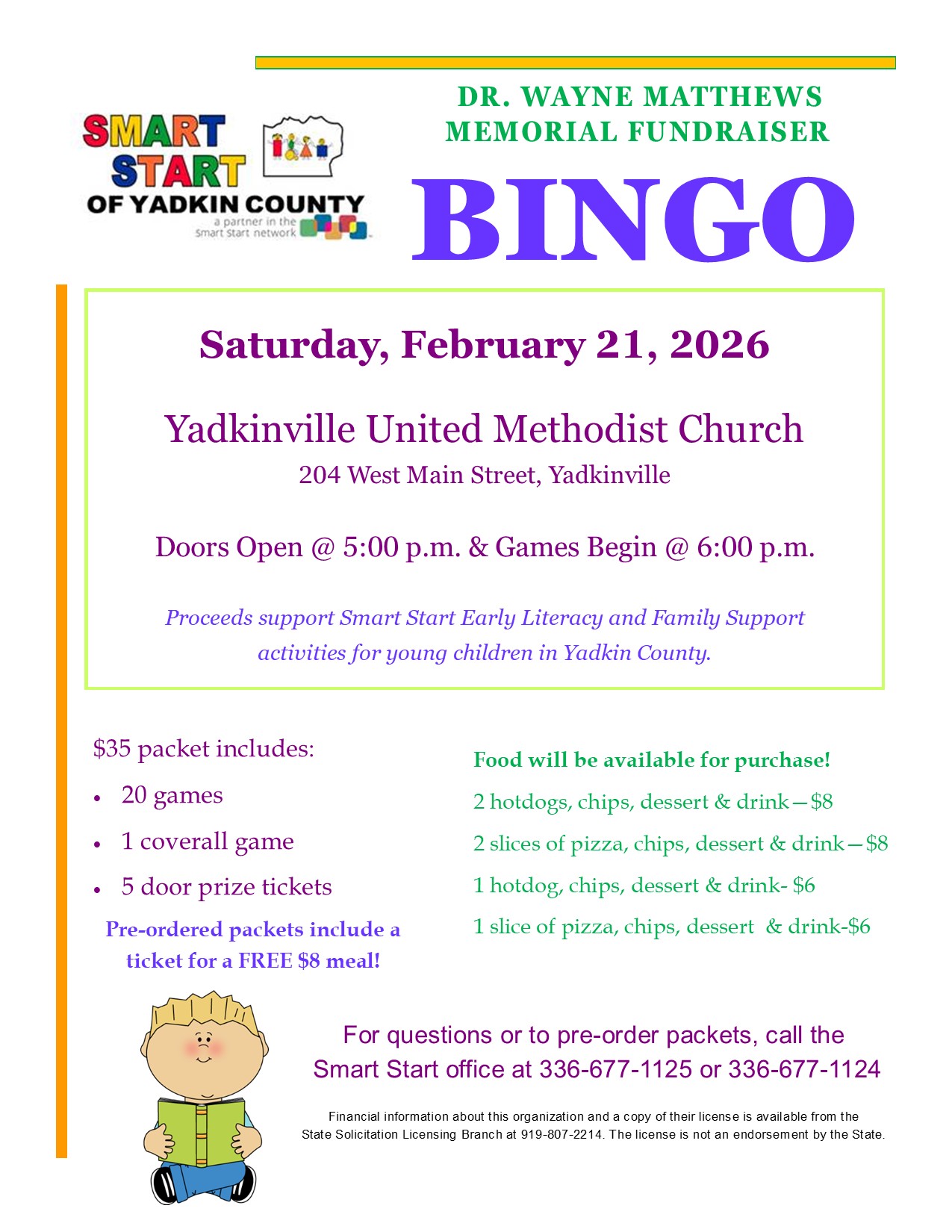 is a non-profit organization led by a local board of directors, designed to provide programs and services for families and children in Yadkin County. It is our mission to prepare all children birth to 5 years of age to be healthy and ready for kindergarten.